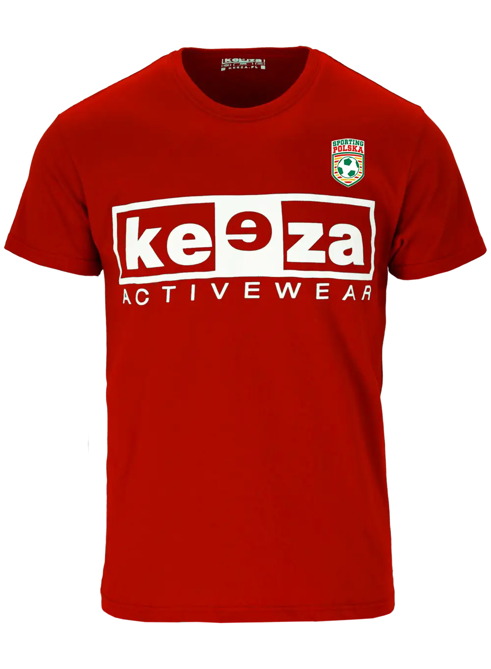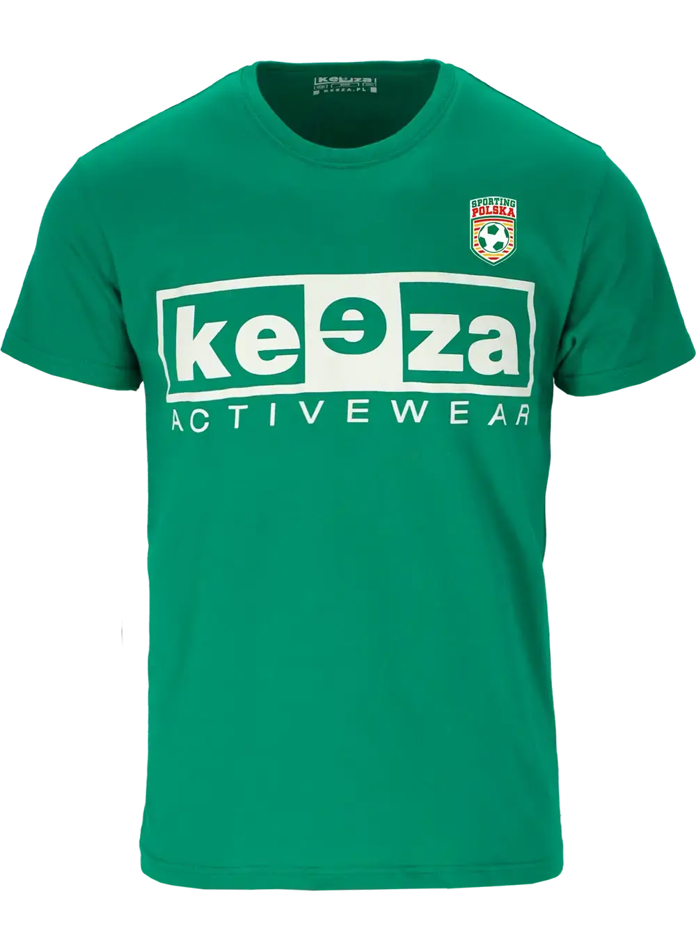Charakterystyczny t-shirt marki KEEZA z nadrukiem na klatce piersiowej i herbem Sporting Polska. Klasyczna dzianina bawełniana, dobrze układająca się na ciele. Bawełniana koszulka keeza nadaje się zarówno do uzupełnienia codziennej stylizacji, jak i do treningu.