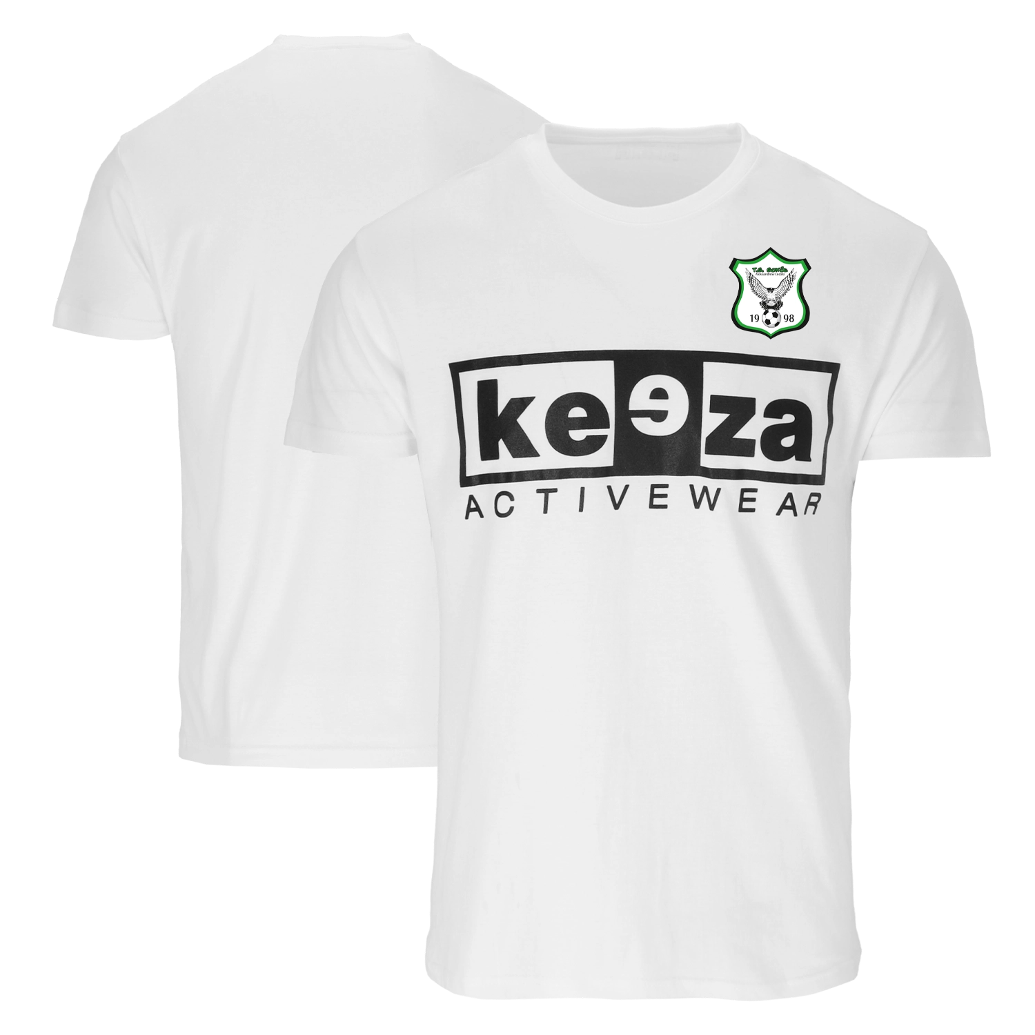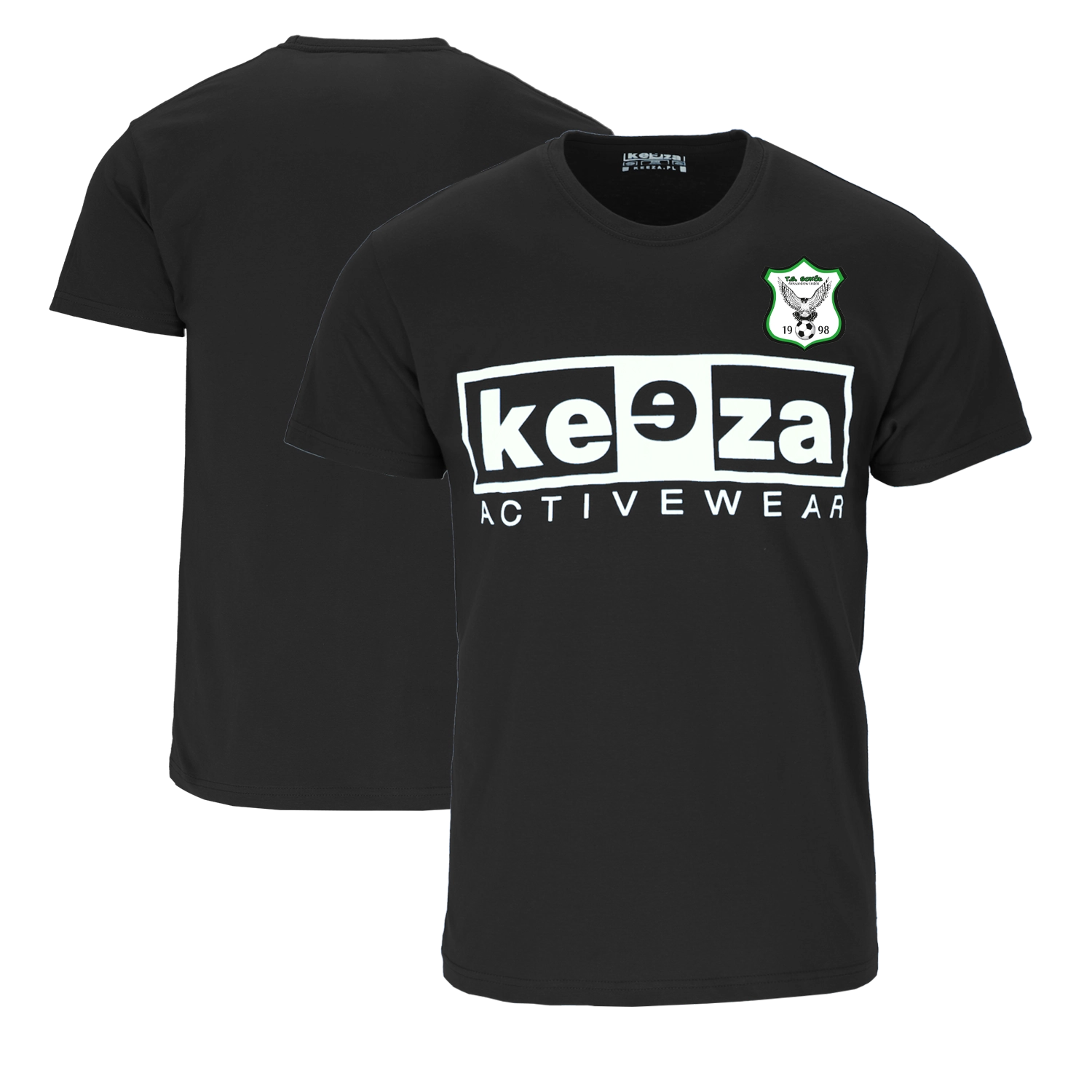 Charakterystyczny t-shirt marki KEEZA z nadrukiem na klatce piersiowej.